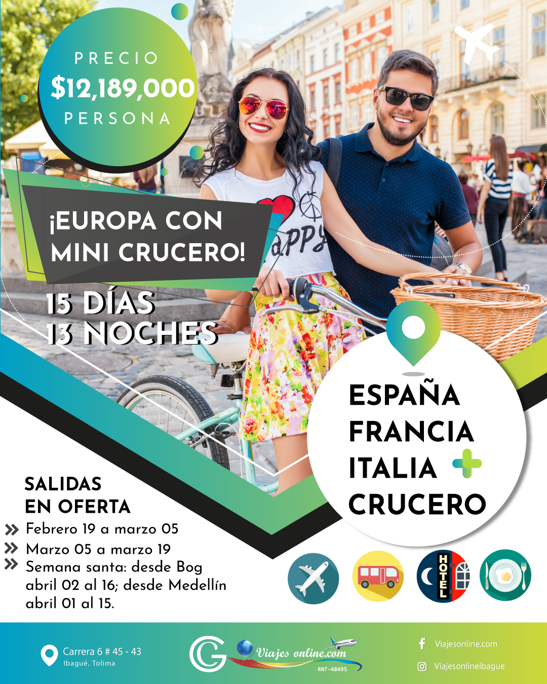 Somos una agencia de viajes ubicada en la ciudad de Ibagué, Colombia. Tenemos más de seis años de trayectoria en el mercado turístico ofreciendo las mejores experiencias y asesorías para nuestros clientes. Tenemos paquetes turísticos a cualquier lugar del mundo. Nuestros planes incluyen tiquetes aéreos y convenios con gran variedad de reconocidas cadenas hoteleras.