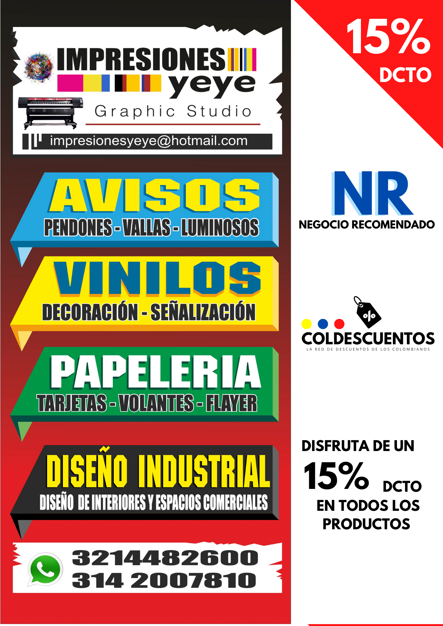 PRESENTANDO TU TARJETA COLDESCUENTOS OBTEN UN 15% DE DESCUENTO EN IMPRESIONES E INSTALACION.